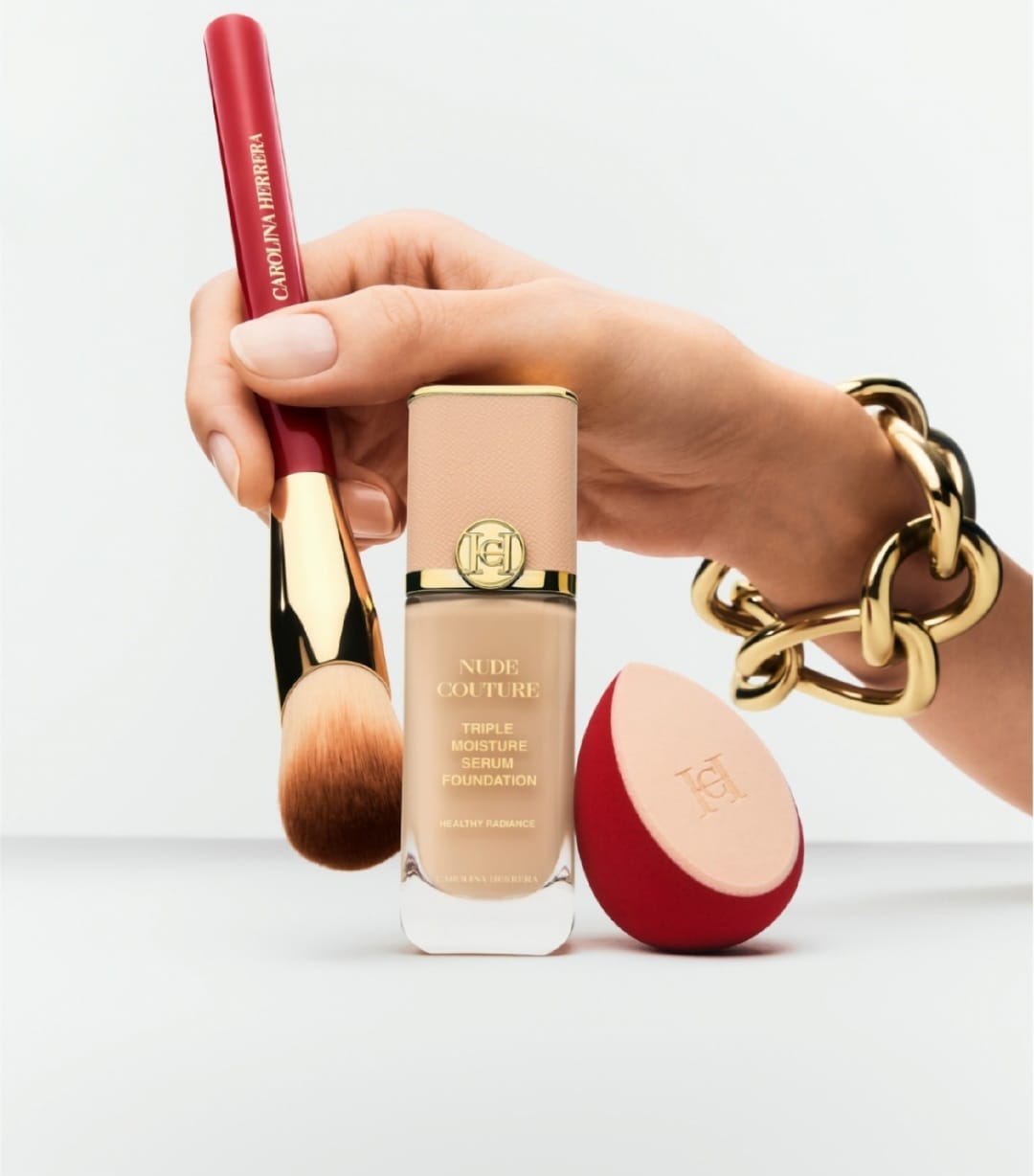 Achieve pro-level results with the Herrera Foundation Brush – the first foundation brush that takes the feel of your fingertips to a professional level. Its unique oval shape and pointed edge mimic fingertip application for seamless blending and precise coverage, even in hard-to-reach areas.