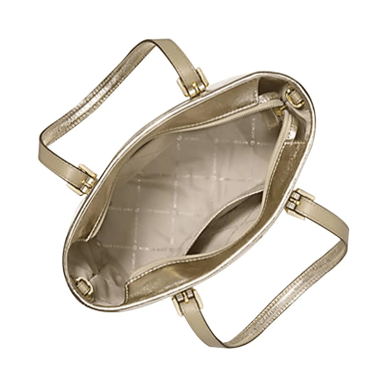 Compact yet practical, our Jet Set tote bag is the ideal daily companion. A metallic finish and a polished charm accent make a luxe statement, while a top-zip fastening ensures your belongings will stay in place. Carry it crossbody on busy days that require on-the-go ease.