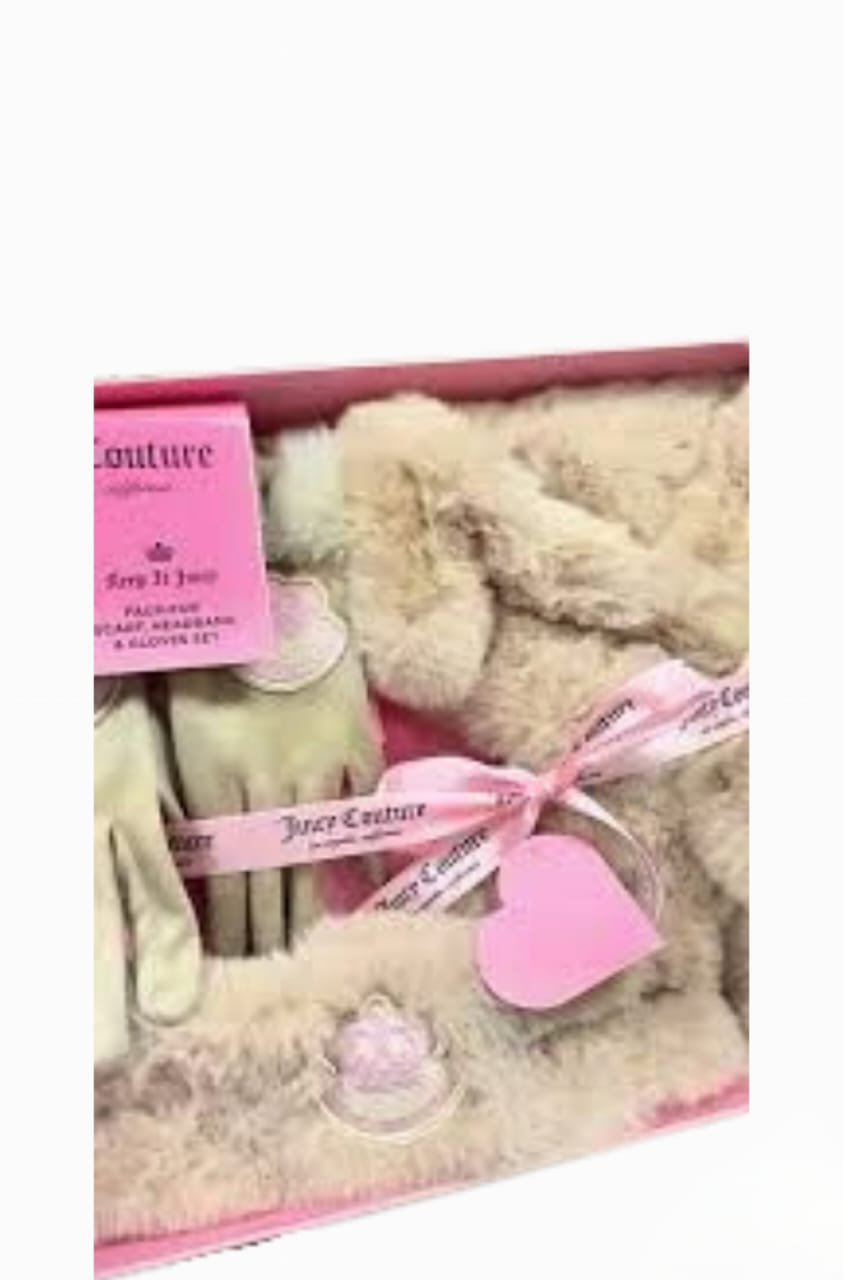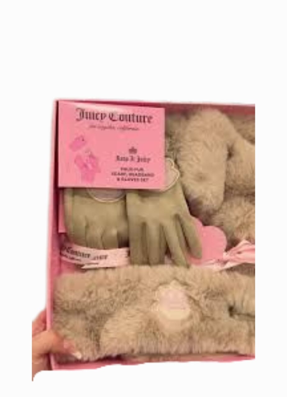 Juicy Couture fur gloves, headband and Scarf Set