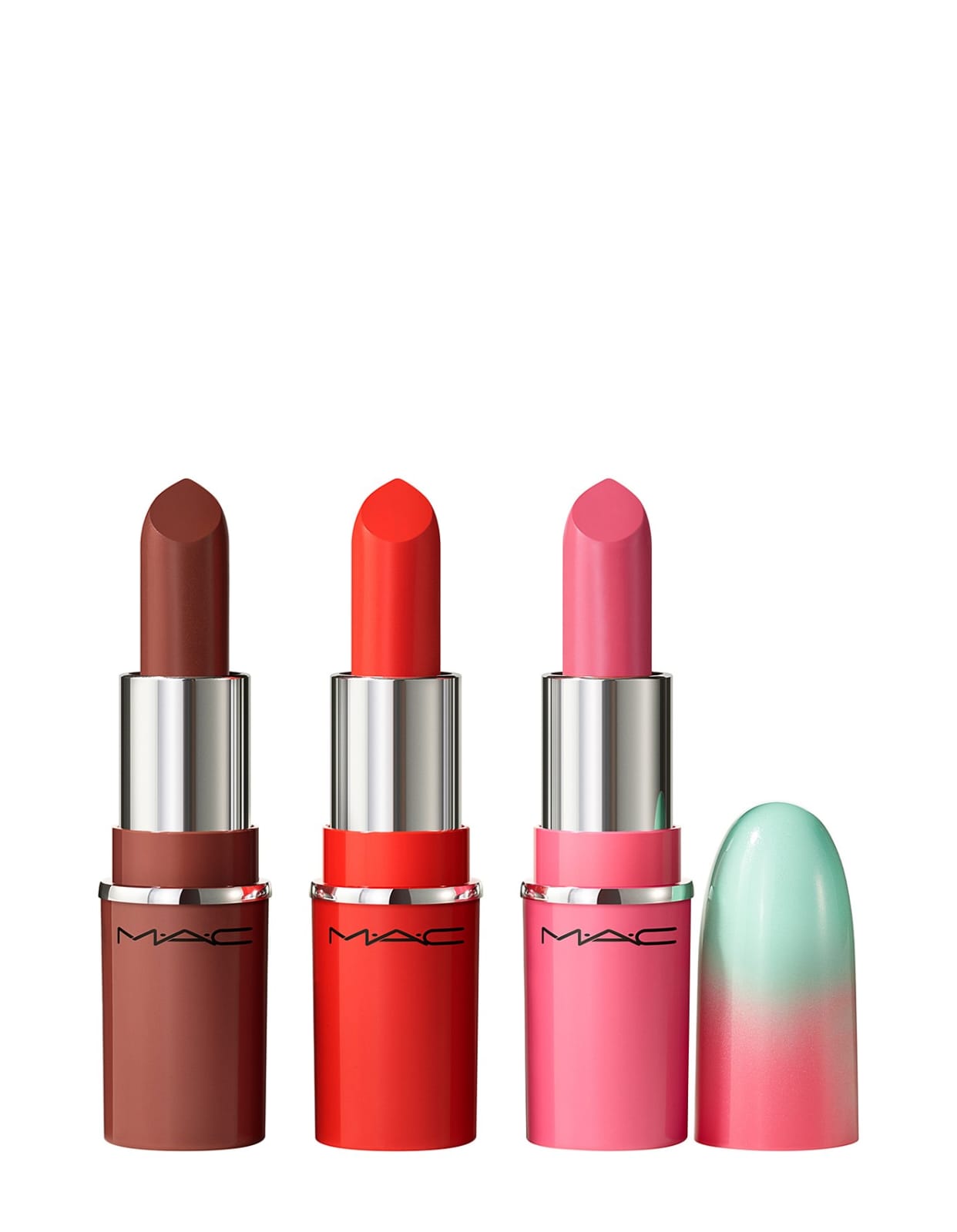 Adorn your lips with a trio of high-shine hues with the MAC Kiss of Magic Lip Kit. Featuring three mini Lustreglass Lipsticks, this set offers a sheer, glossy colour in a lightweight, comfortable formula. Each lipstick glides on smoothly, delivering a wash of buildable pigment with a luminous finish, perfect for creating a variety of looks.