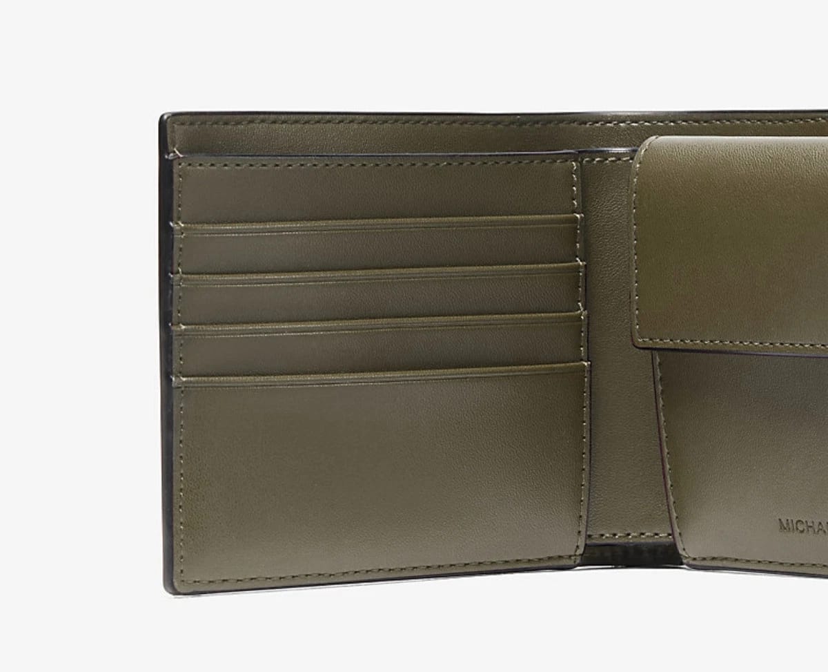 with card slots, a spot for cash, and a snap-fastened coin pouch.
