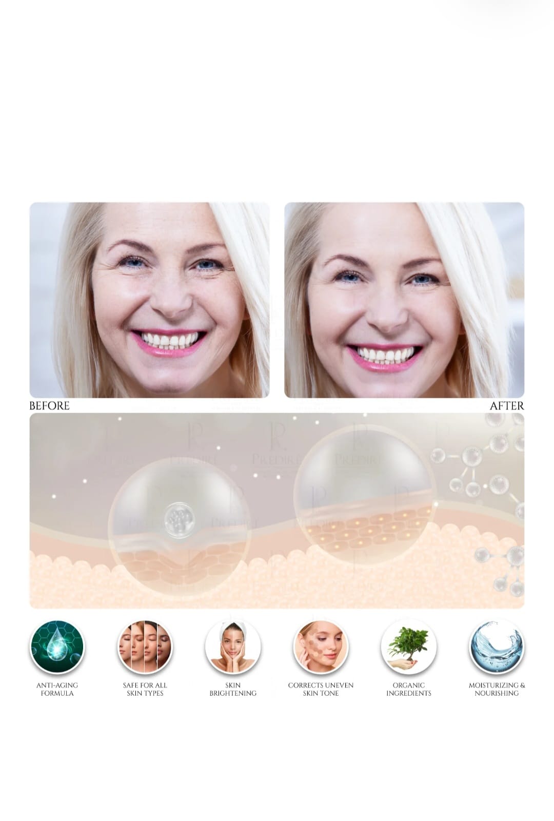 Predire Snail Skin 60-Second Wrinkle Remover firms and evens out the surface of your skin, reducing the appearance of lines, wrinkles, and even under-eye dark circles and puffiness rapidly within 60 seconds. Once applied, it lasts for hours, skin stays smooth and flexible, make you more confident and beautiful