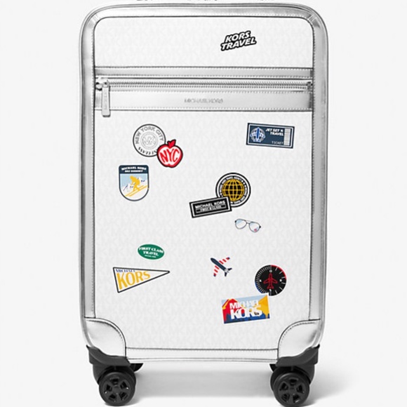 Crafted in logo-print canvas stamped with playful patches, this suitcase brings a touch of personality to every adventure. It features a smooth trim, reinforced corners, and sleek hardware for durability, plus 360-spinning wheels and an organized interior for ultimate convenience.